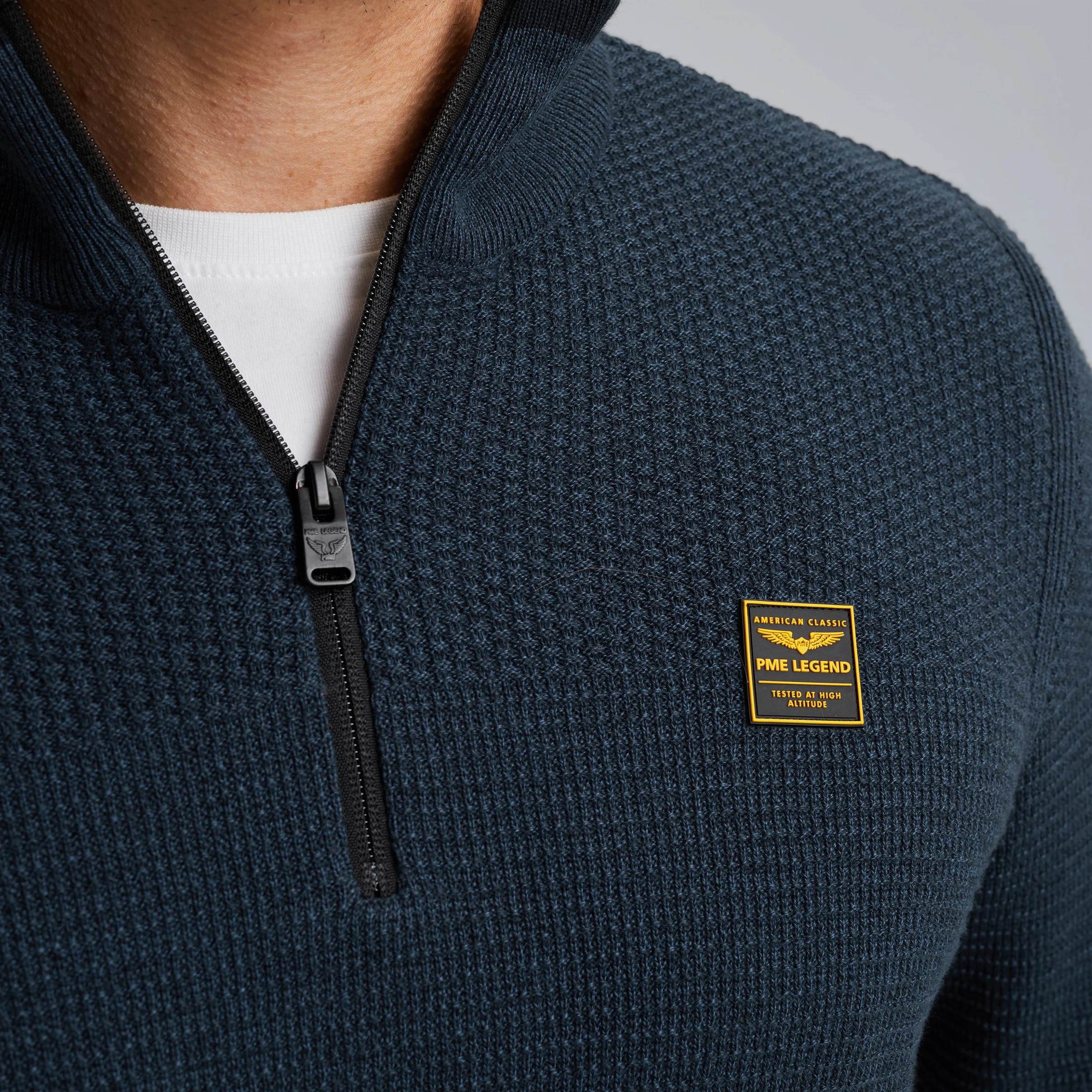 Pullover with half zipper Blue