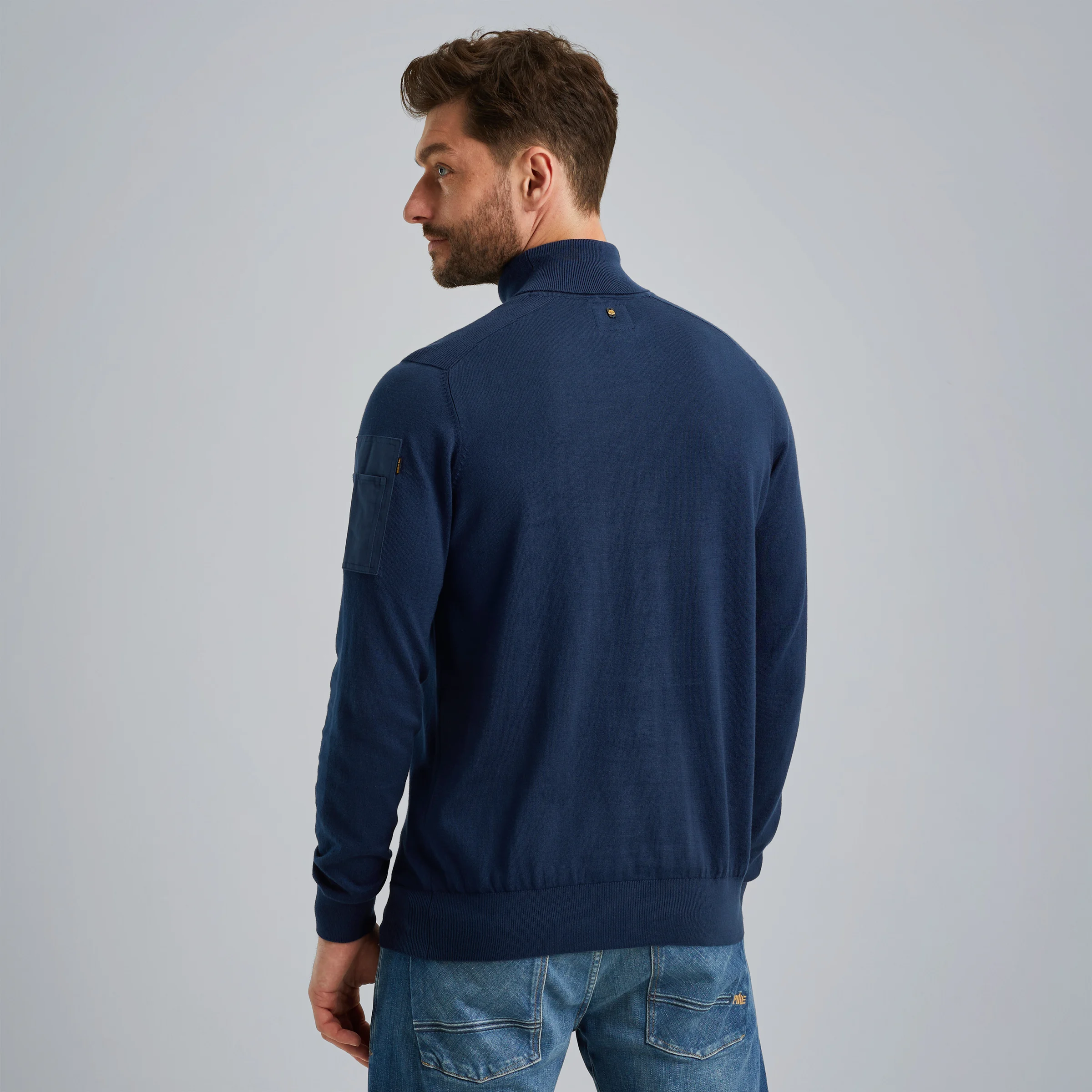 Pullover with stand-up collar Blue